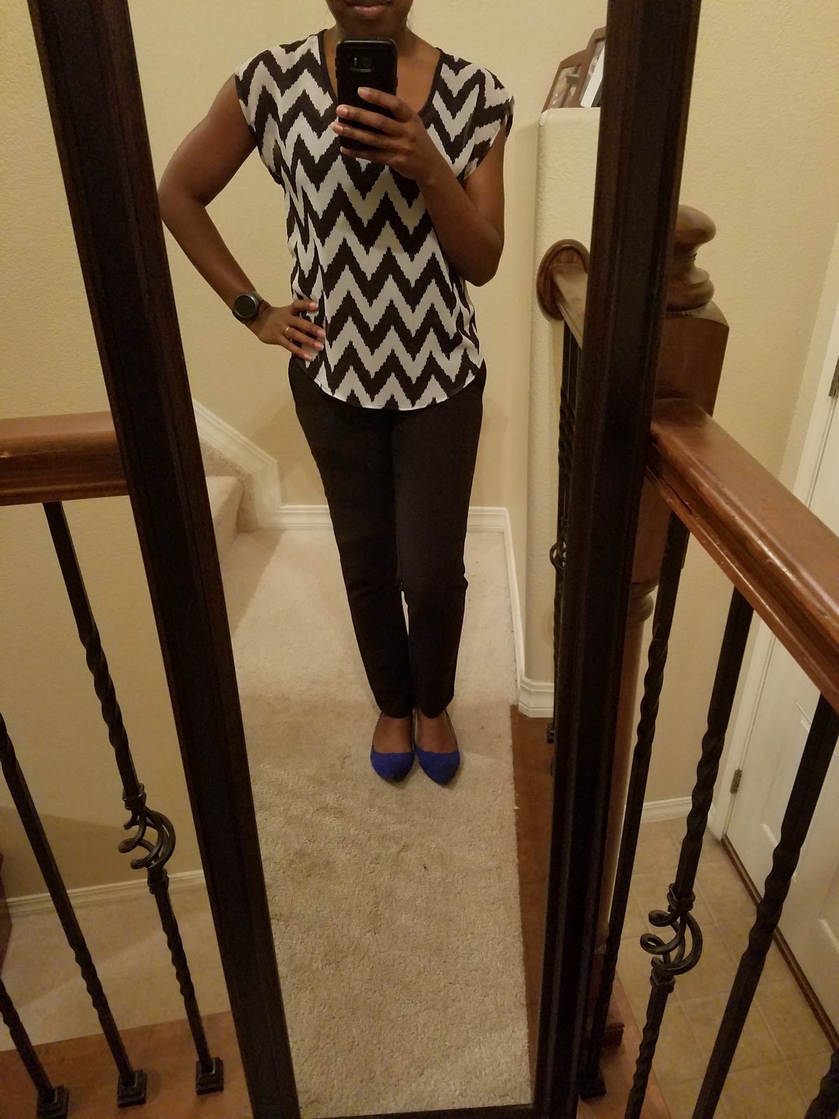 My day 2 outfit was my favorite. My skirt is from Forever 21 for $9.90 and my "Making Magic Happen" shirt for $4 was from the totally affordable wish.com. I will warn you to read all the comments before making a purchase on wish.com. I believe that some the these items are from China and may not be the quality you expect. So far, I am extremely satisfied with my cheap buys and their quality. Those shoes are an oldie but a goodie. I purchased those shoes from Ebay several years ago but I've seen similar styles on Amazon. The blazer was an awesome Christmas gift from my cousin.